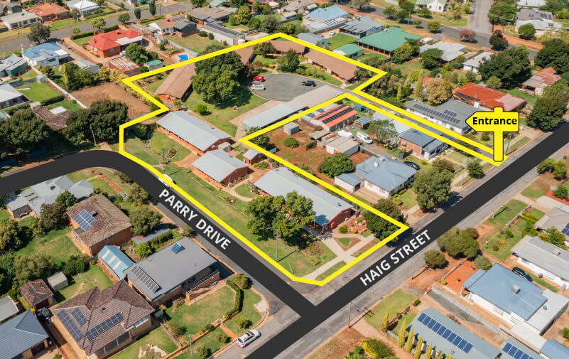 A sealed carport area with security lighting can accommodate 14 cars for residents as required.